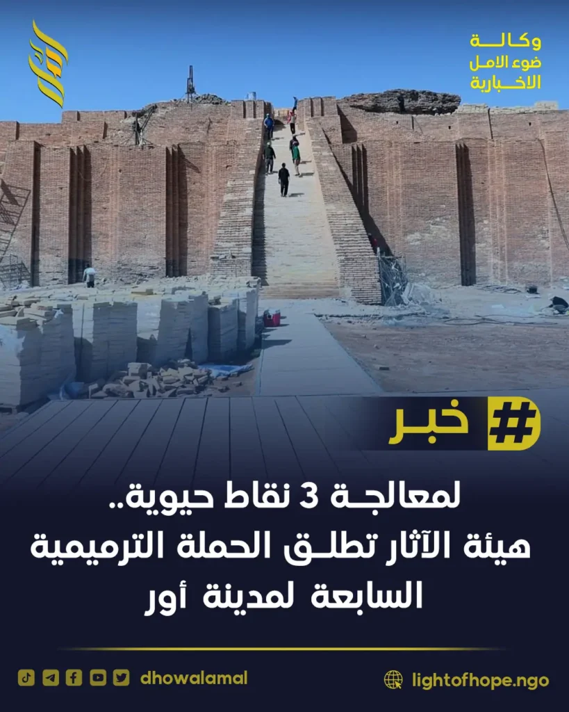 أعلنت الهيئة العامة للآثار والتراث بدء أعمال صيانة زقورة أور بالتعاون مع اليونسكو، للحفاظ على الموقع ومعالجة أضرار التعرية.