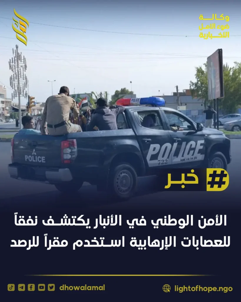 أعلن جهاز الأمن الوطني في الأنبار اكتشاف نفق استخدمته عصابات إرهابية للرصد، مؤكداً البدء بمعالجته لمنع استغلاله من قبل المطلوبين.