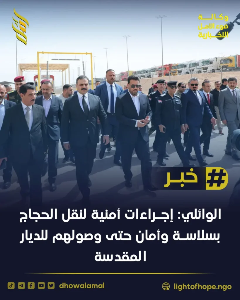 هيئة المنافذ الحدودية العراقية: بدء تفويج الحجاج براً عبر منفذ عرعر الحدودي بإجراءات مشددة لضمان انسيابية وأمان الوصول.